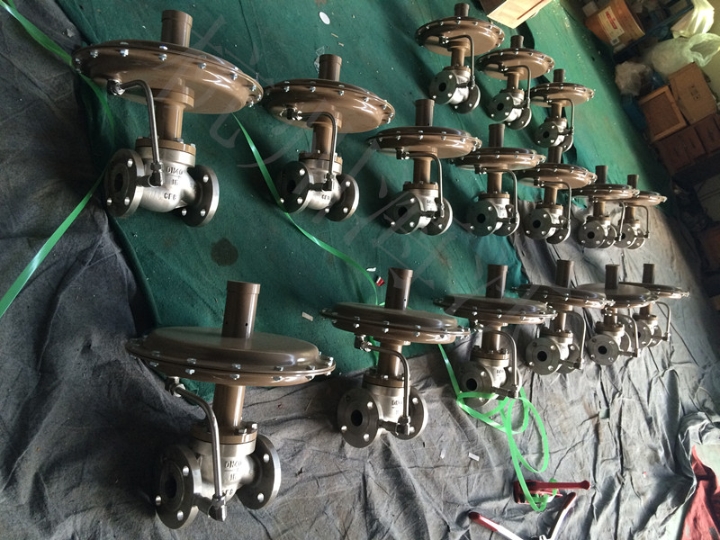 氮封裝置(氮封閥)是由SKVG型指揮器操作型自力式壓力調(diào)節(jié)閥(這里簡稱供氮閥)和SKVX型自力式微壓調(diào)節(jié)閥(簡稱泄氮閥)兩大部份組成。當(dāng)罐內(nèi)壓力升高超過設(shè)定值時,供氮閥關(guān)閉,泄氮閥打開(罐頂未設(shè)呼吸閥,或呼吸閥故障打不開),將罐內(nèi)多余壓力泄放。在儲罐內(nèi)壓力降低時,泄氮閥處于關(guān)閉狀態(tài),供氮閥打開,向罐內(nèi)注氮?dú)狻9┑y閥前壓力最好在1.0Mpa以下,現(xiàn)場壓力較高時,可在供氮閥前安裝一只ZZYP型自力式壓力調(diào)節(jié)閥將壓力減至。1.0 Mpa以下,以提高可靠性和使用效果。