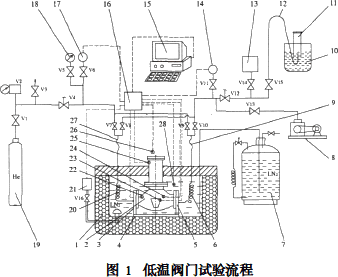 如圖1所示,基于計算機(jī)數(shù)據(jù)采集的低溫閥門試驗(yàn)裝置依次包括:
