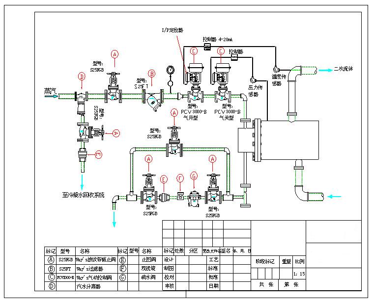 溫度調(diào)節(jié)閥組合使用氣動調(diào)節(jié)閥的溫控式換熱器系統(tǒng)圖