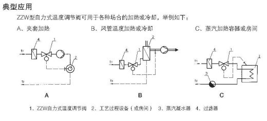 自力式電動溫度調(diào)節(jié)閥(適用于較大口徑及導(dǎo)熱油控制),該閥最大的特點只需普通220V電源,利用被調(diào)介質(zhì)自身能量,直接對蒸汽、熱水、熱油與氣體等介質(zhì)的溫度實行自動調(diào)節(jié)和控制,亦可使用在防止對過熱或熱交換場合,該閥結(jié)構(gòu)簡單,操作方便,選用調(diào)溫范圍廣、響應(yīng)時間快、密封性能可靠,并可在運行中隨意進(jìn)行調(diào)節(jié),因而廣泛應(yīng)用于化工、石油、食品、輕紡、賓館與飯店等部門的熱水供應(yīng)。