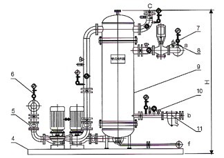 10.溫度傳感器11.疏水閥12、碟閥13.流量計14.電磁閥15.補水泵16.止回閥