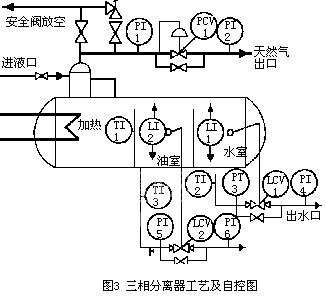 2、自力式調(diào)節(jié)閥在河南油田已有十幾年的使用歷史,已得到了實(shí)踐的檢驗(yàn)和成功的應(yīng)用。典型應(yīng)用:油氣水三相分離器的壓力控制,油室、水室液位控制,如圖3所示;除油器壓力、液位控制,如圖4所示;氣液分離器、緩沖罐壓力、液位控制(略);居民區(qū)供暖分支管線的流量、溫度控制等(略)。