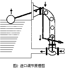 自力式液位調(diào)節(jié)閥又稱(chēng)浮子液面調(diào)節(jié)器,其工作原理如圖2所示,浮球通過(guò)連桿機(jī)構(gòu)與調(diào)節(jié)閥的閥桿相連接。通過(guò)浮球和連桿機(jī)構(gòu)的作用,調(diào)整調(diào)節(jié)閥的開(kāi)度來(lái)使液位保持在適當(dāng)?shù)母叨壬。?dāng)出液量減少,容器內(nèi)液位升高時(shí),說(shuō)明進(jìn)液量大于出液量,浮球隨之升高,并通過(guò)連桿機(jī)構(gòu)立即將閥門(mén)關(guān);反之,當(dāng)液位降低時(shí)浮球通過(guò)連桿機(jī)構(gòu)將閥門(mén)開(kāi)大,直到進(jìn)出液量相等,液位穩(wěn)定為止。這就是進(jìn)口控制的工作原理。