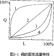當(dāng)調(diào)節(jié)閥兩端壓差△P保持不變時(shí),閥的流量特性稱為固有流量特性。固有流量特性主要有直線、等百分比(對(duì)數(shù))、拋物線和快開(kāi)等4種類(lèi)型,如圖3-1所示: