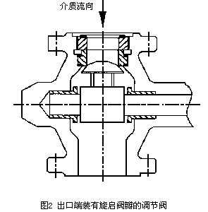閃蒸破壞是高速度的飽和氣泡沖擊閥體表面,并腐蝕閥體表面造成的。由于角形閥中的介質(zhì)直接流向閥體內(nèi)部下游管道的中心,而不是象球形閥一樣直接沖擊體壁,所以大大減少了沖擊閥體體壁的飽和氣泡數(shù)量。從而減弱了閃蒸的破壞力。因此在閃蒸破壞出現(xiàn)的情況下,角形閥體設(shè)計比球形閥體更為經(jīng)濟(jì)。帶有旋啟式閥瓣的閥門結(jié)構(gòu)(圖2)也是一種有效的防止閃蒸破壞的方法。在閥體內(nèi)部下游的一側(cè)安裝了旋啟式閥瓣,液體的壓力在閥體的下游處降到飽和壓力以下,閃蒸出現(xiàn)在下游管線。在某些情況下,常常采用由一段下游管道承受閃蒸破壞的方法保護(hù)閥門。