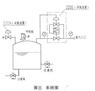 氮封閥(氮封裝置)是由ZZDG型指揮器操作型自力式供氮閥(這里簡稱供氮閥)和ZZDX型自力式泄氮閥(簡稱泄氮閥)兩大部份組成。當(dāng)罐內(nèi)壓力升高超過設(shè)定值時,供氮閥關(guān)閉,泄氮閥打開(罐頂未設(shè)呼吸閥,或呼吸閥故障打不開),將罐內(nèi)多余壓力泄放。在儲罐內(nèi)壓力降低時,泄氮閥處于關(guān)閉狀態(tài),供氮閥打開,向罐內(nèi)注氮氣。供氮閥閥前壓力最好在1.0Mpa以下,現(xiàn)場壓力較高時,可在供氮閥前安裝一只ZZYP型自力式壓力調(diào)節(jié)閥將壓力減至:1.0 Mpa以下,以提高可靠性和使用效果。