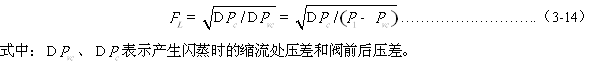 在原公式的推導(dǎo)中,認為調(diào)節(jié)閥節(jié)流處由P1直接下降到P2,見圖3-5中虛線所示。但實際上,壓力變化曲線如圖3-5中實線所示,存在著壓力恢復(fù)的情況。不同結(jié)構(gòu)的電動調(diào)節(jié)閥,壓力恢復(fù)的情況不同。阻力越小的調(diào)節(jié)閥,恢復(fù)越厲害,越偏離原推導(dǎo)公式的壓力曲線,原公式計算的結(jié)果與實際誤差越大。因此,引入一個表示調(diào)節(jié)閥壓力恢復(fù)程度的系數(shù)FL來對原公式進行修正——壓力恢復(fù)系數(shù)FL(Pressure reecvery factor),其表達式為: