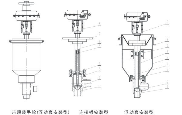 1、閥體2、閥芯3、導(dǎo)向套4、閥桿5、浮動套6、長頸閥蓋7、波紋管8、連接板9、執(zhí)行機構(gòu)