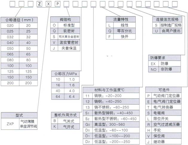 三、氣動(dòng)薄膜單座調(diào)節(jié)閥的型號(hào)編制: