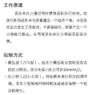 ZZV型自力式微壓調(diào)節(jié)閥是一種不需要外加能源的自力式執(zhí)行器產(chǎn)品。自力式微壓調(diào)節(jié)閥可分段調(diào)節(jié):從50mm.W.C至0.1MPa。其用途十分廣泛,可用于工業(yè)燃燒爐系統(tǒng)微壓減壓、穩(wěn)壓?刂苾煞N物料,如煤氣、空氣流量配比,以達(dá)理想燃燒。用于氫冷發(fā)電機(jī)組密封油系統(tǒng),控制密封油與氫氣間壓力差,以確?煽棵芊。當(dāng)差壓閥的低壓端通大氣即為微壓閥(差壓閥負(fù)壓,端壓,力為零)。