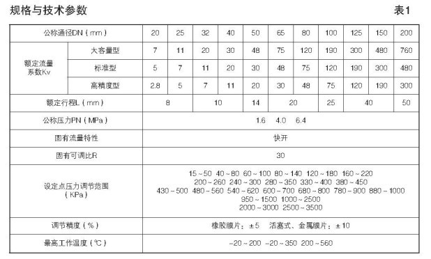 自力式壓力調(diào)節(jié)閥的調(diào)節(jié)范圍設(shè)定及規(guī)格參數(shù):