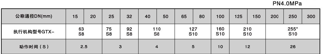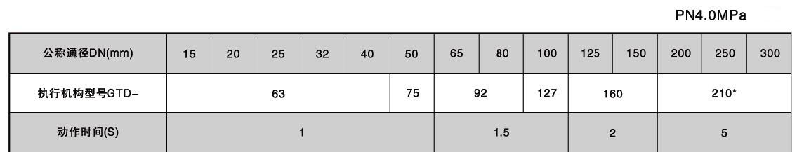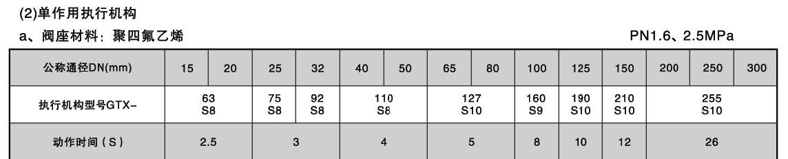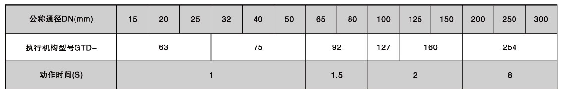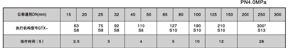 氣動快速切斷球閥的執(zhí)行器配置及切斷時間: