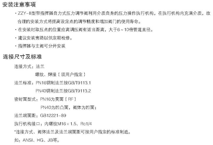 ZZY-II型自力式帶指揮器型壓力調(diào)節(jié)閥安裝注意事項: