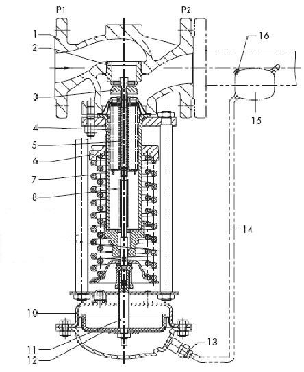 ◇全平衡閥型配有平衡波紋管。閥后壓力P2作用在波紋管的內(nèi)表面,閥前壓力P1作用在波紋管的外表面,從而使作用在閥芯上的閥前和閥后產(chǎn)生的壓力被平衡。