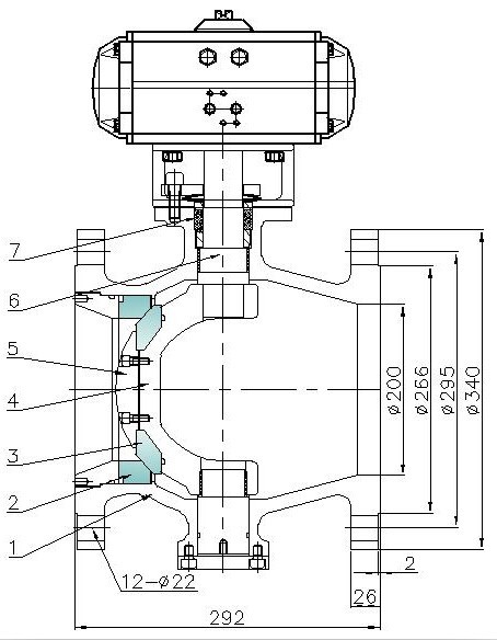 一、氣動耐磨專用陶瓷球閥結構簡圖: