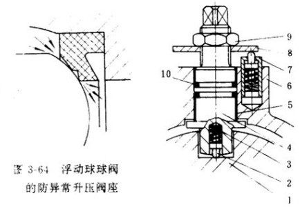對于固定球球閥;可采用圖3-22和圖3-24所示彈性閥座。當(dāng)閥體體腔內(nèi)壓力異常升高時(shí),將反向推動(dòng)閥座后退使之與球體脫離接觸。流體則沿著閥座與球體之間的間隙流出,消除過壓現(xiàn)象!