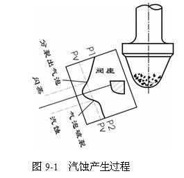 在節(jié)流口介質(zhì)的高速流動(dòng),其速度能急劇增加,根椐能量守恒原理,壓力能必將急劇下降,當(dāng)壓力低于飽和蒸氣壓(PV)后,液體就會(huì)分裂出氣體來,形成氣液雙相流動(dòng),這就是所謂的閃蒸;當(dāng)介質(zhì)流經(jīng)節(jié)流口后,節(jié)流速度開始逐漸下降,壓力開始逐步恢復(fù),當(dāng)壓力恢復(fù)到大于飽和蒸氣壓時(shí),汽泡破裂回到液態(tài),就在破裂的瞬間,產(chǎn)生強(qiáng)大的壓力沖擊波,使作用的閥芯、閥座表面的材料沖擊成蜂窩狀的小孔,并引起振動(dòng)和噪音,這就是所謂的汽蝕。引起閃蒸的壓差條件是:△P=FL2(Pl-Pv),其中FL為壓力恢復(fù)系數(shù),P1為閥前壓力,Pv為入口溫度下飽和蒸汽壓。