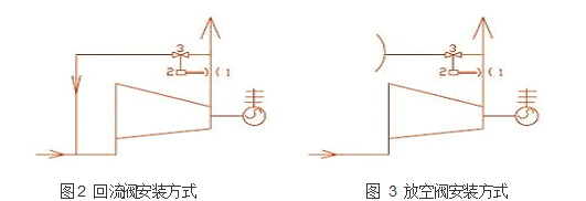 2.在壓縮機或風機出口安裝放空閥,利用放空來提高壓縮機或風機氣體流量(見圖3)。